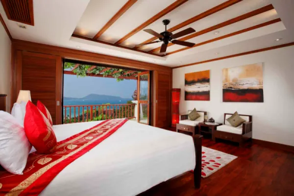 • One of the best complexes in Phuket, in our opinion. Excellent service, breathtaking views of the ocean and the lights of Patong, a prime location in a quiet, private hillside yet just 600 meters from the action, and two beaches nearby to choose from: lively Patong and the quieter Kalim.This villa has three bedrooms for couples or families. A spacious terrace with a swimming pool offers views of the sea and the city lights. The master bedroom has a jacuzzi and terrace, the second has a terrace and shower, and the third has two single beds and a bathtub. The interiors are decorated in Asian style, complementing the tropical atmosphere.