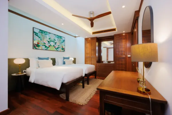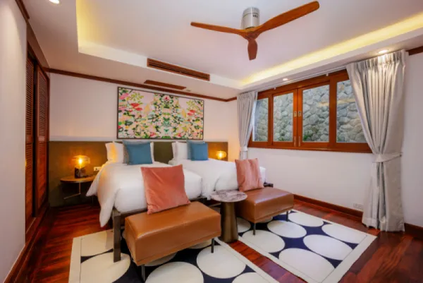 • This four-bedroom villa boasts panoramic sea and sunset views and is located at the highest, most private point of the complex. An elevator provides direct access to both levels of the villa.A spacious terrace with a covered lounge area and a curved infinity pool overlooks the Andaman Sea. Two master bedrooms feature king-size beds, balconies, and ensuite Jacuzzi bathtubs, and two guest bedrooms offer flexible layouts and ensuite shower rooms. This is an excellent choice for families with children.
