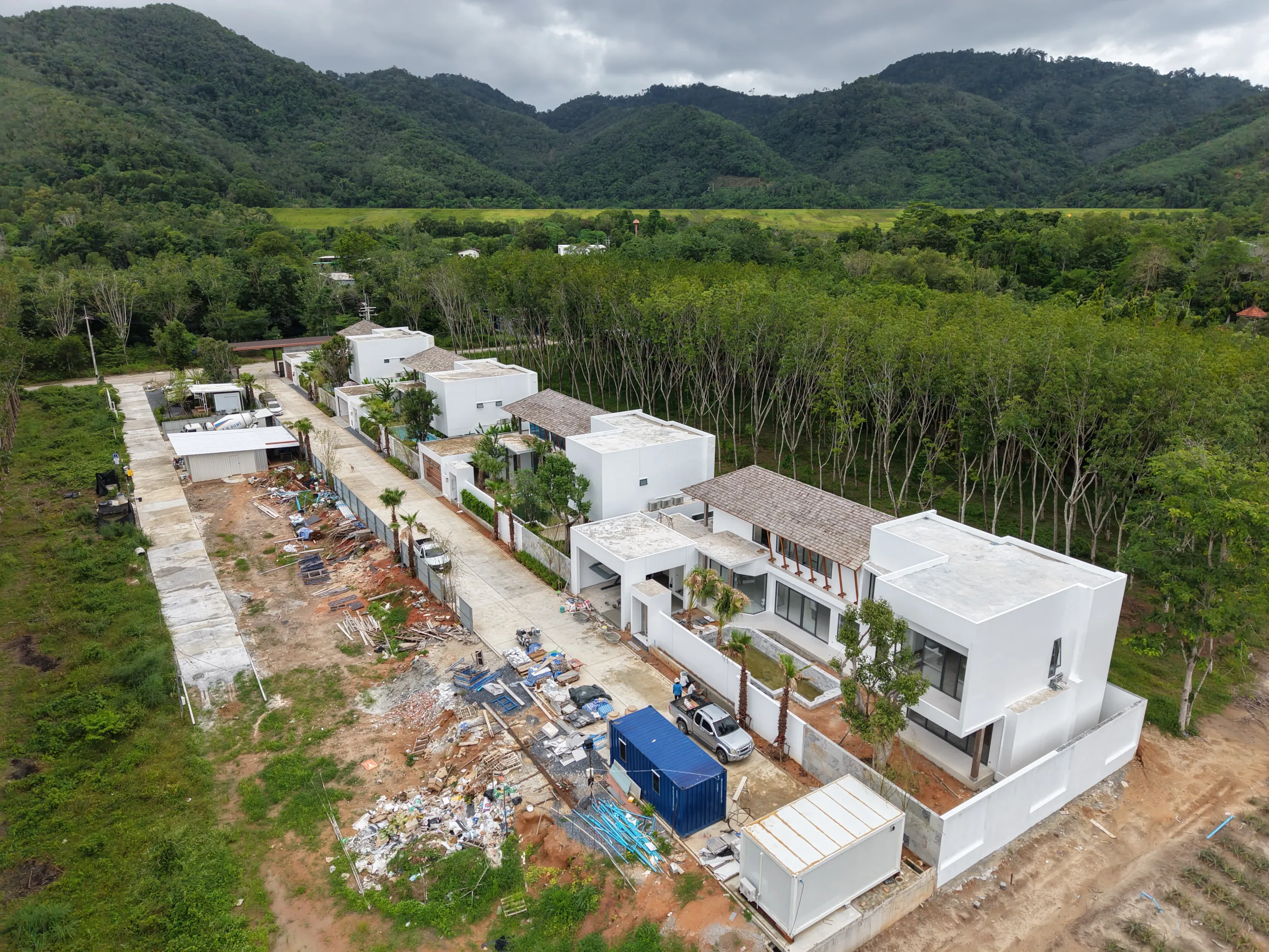 Виллы отличаются роскошным и современным декором. Использование высококачественных материалов, включая кедровую древесину для кровли, полы из гранитной плитки, мраморные кухонные столешницы и встроенную мебель.